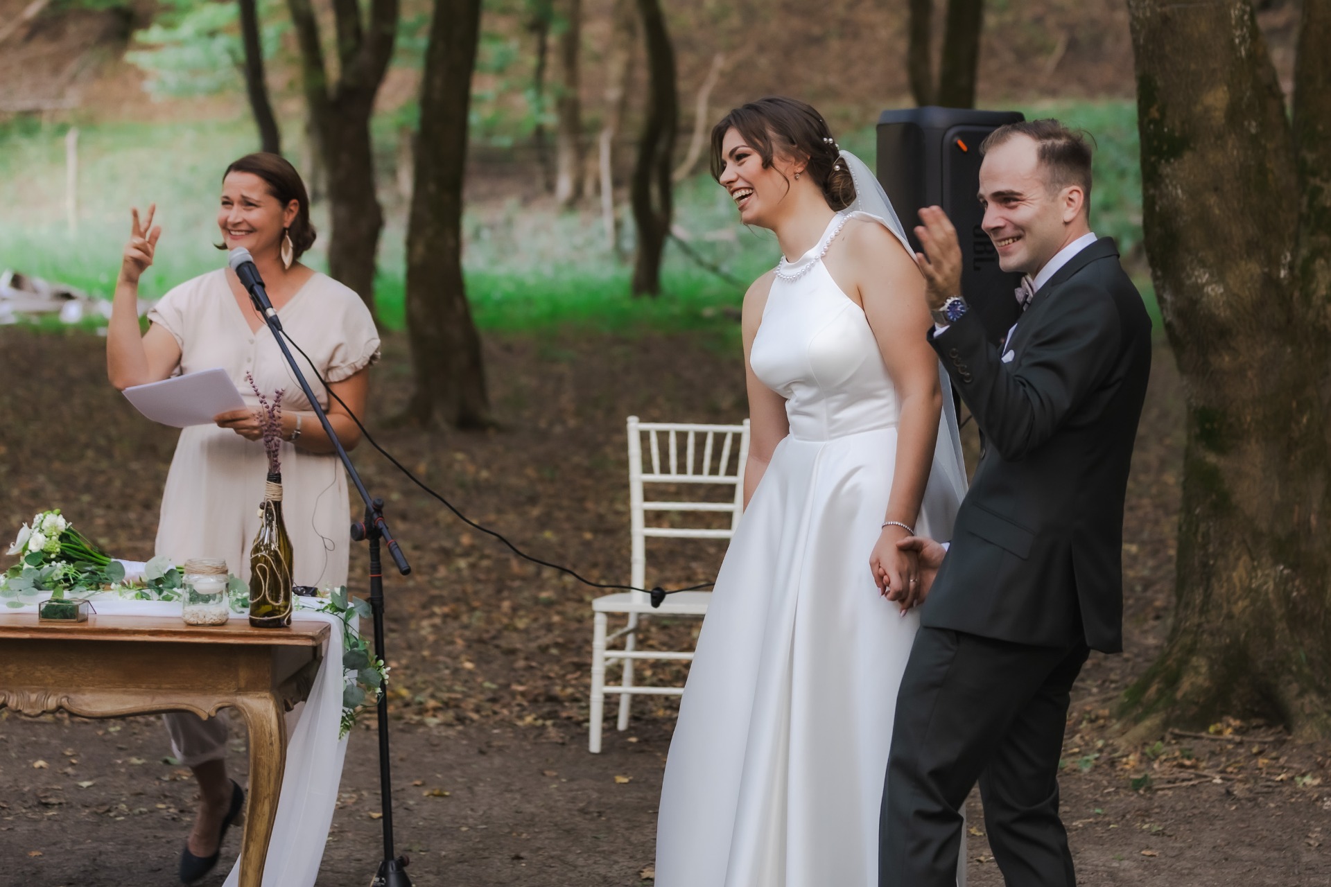 Nagyon köszönünk mindent, most kezdjük kicsit emészteni az eseményeket! Nagyon gyönyörű szertartás volt, ennél szebbet, jobbat elképzelni se lehetett volna! Szerintem szem nem maradt szárazon, rengeteg visszajelzést kaptunk, hogy ilyen meghitt és személyes szertartáson meg sose voltak! És hát az egész napos szervezés, koordinálás pedig profi volt, hatalmas segítség voltál nekünk, nagyon köszönjük! Örülünk, hogy megismertünk és reméljük megmarad a kapcsolat!