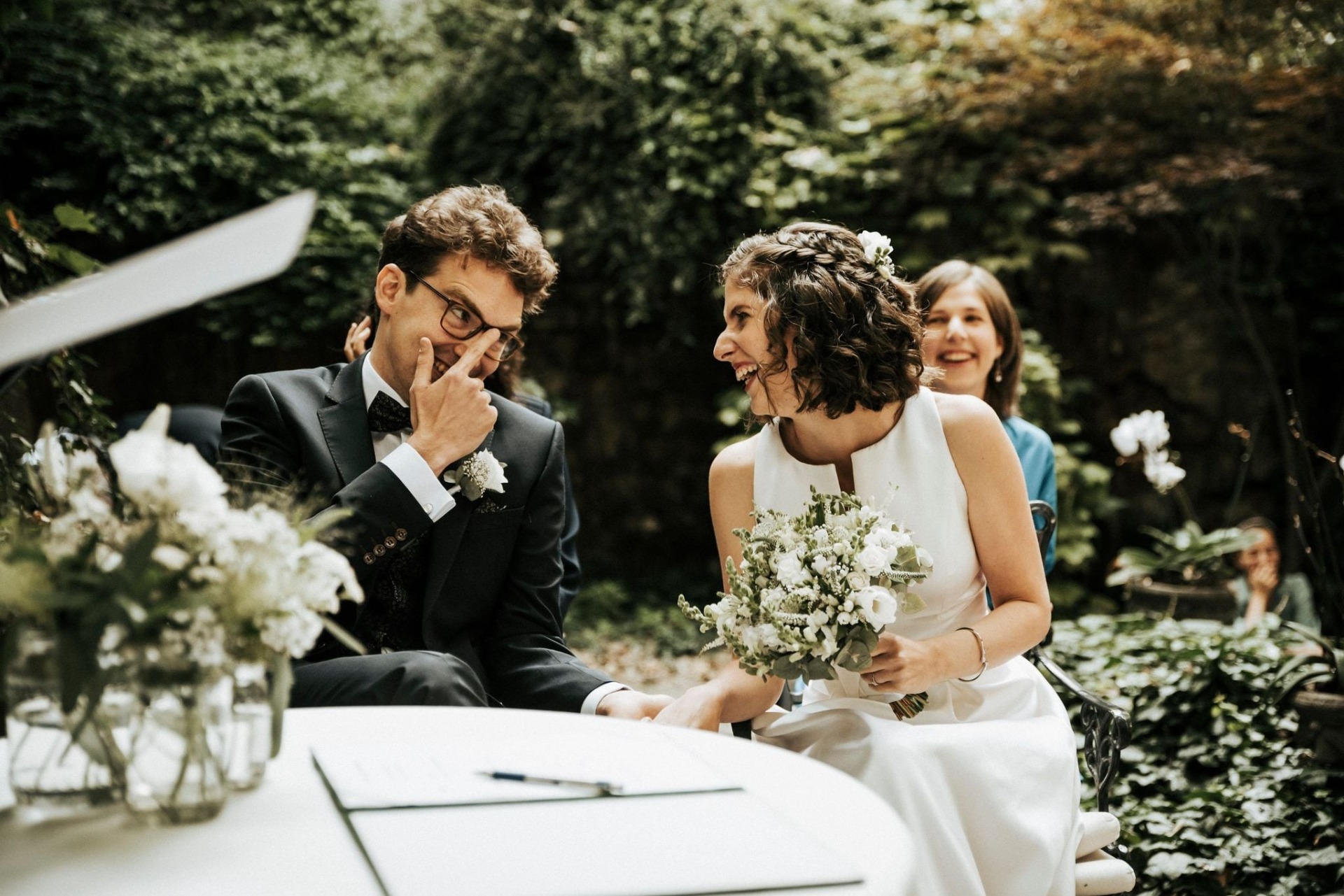 Az esküvő gyorsan elszáll, és ha nem készülnek megfelelő felvételek, az utólag bosszantó lehet. Bár ez nem közvetlenül az én feladatom, az alvállalkozók (fotós, filmes) koordinációjával és a forgatókönyv pontosításával hozzájárulok ahhoz, hogy a fontos pillanatok megfelelően megörökítésre kerüljenek. Emellett igény esetén a szertartás szövegét is elküldöm emlékül, ami egy gyönyörű, kézzelfogható emlék marad nektek.