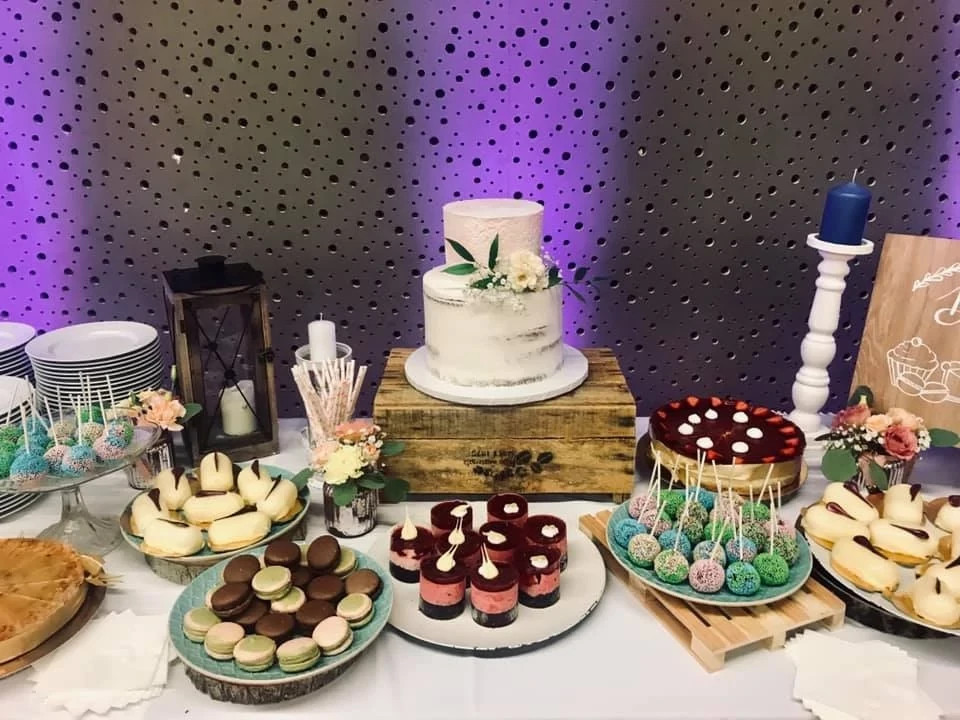 Évek óta tartja magát a desszertasztalok divatja. Ez az egyik legfantasztikusabb dolog az esküvőn. Színek és ízek kavalkádja egyben dekorációs elem is, ahol helyet kapnak macaronok, nyalókasütik, vattacukor, csokiszökőkút, pohárkrémel, mini torták, képviselő fánkok és a hagyományos magyar desszertek is. Ez utóbbinál jellemző például a mézeskalácsok és puszedlik, melyek nagy reneszánszukazt élik. Köszönetajándékként is tökéletes. Az édes pillanatokon és a látványon túl a legjobb hogy a svédasztalos kialakítás miatt bármikor rájárhatunk a finomságokra. A 2026-os torta trendekben megjelennek a pompázó színek, az extrém textúrák és az esküvő tematikája is. Továbbra is nagy divat a vintage stílus és az ún. meztelen torták, de az ehető cukorvirágos torták is egyre nagyobb teret kapnak. Nem szabad elfeledkezni azokról a vendégekről sem, akik valamilyen érzékenységben szenvednek. Tökéletes - és már kötelező is - választás egy mindenmentes torta, hiszen abból mindenki ehet. Szerencsére ezekből is egyre nagyobb a választék.